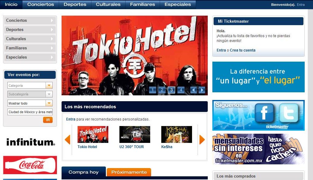 05/10/2010 19:58Tokio Hotel na página principal do TicketMaster